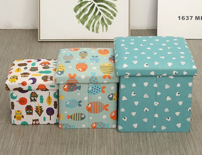 Home Linen Fabric Footstool Cube Storage Box Shoe Bench Foot Rest Suitable for Bedroom Hallway Living Room