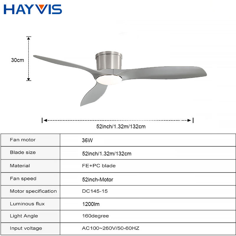 Modern Metal 5 Blades 52 Inch DC Motor Remote Control LED Ceiling Fan with Light for Living Room