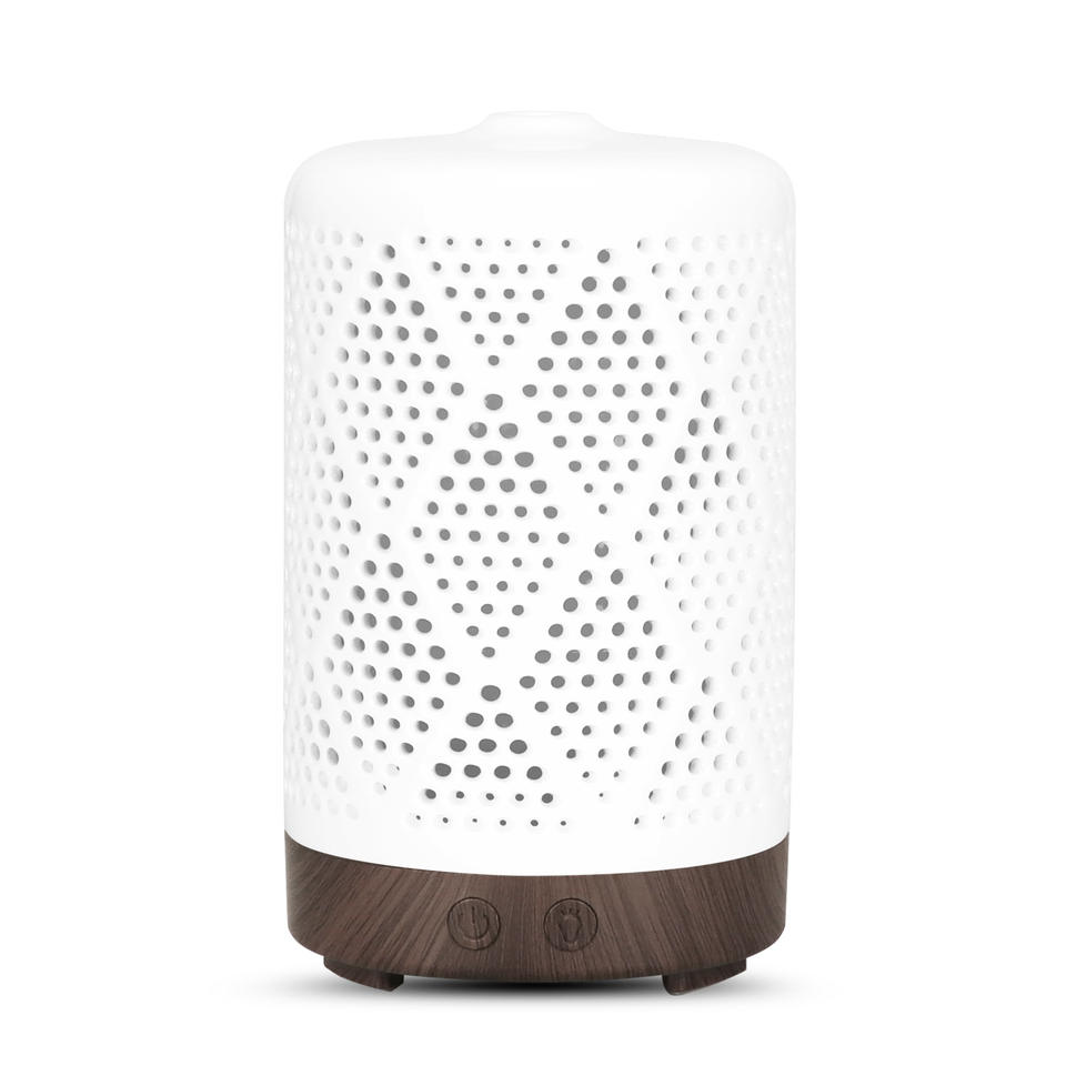 Home Mini Ceramic Aroma Diffuser Humidifier 0.5L Ultrasonic Essential Oil Diffuser With Night Light White Base
