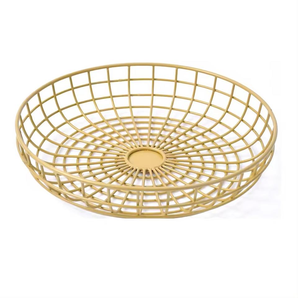 Modern Home Kitchen Storage Organizer round Iron Metal Wire Fruit Basket Food Storage and Display Holder