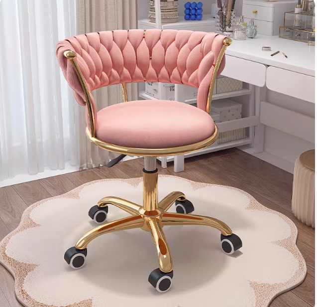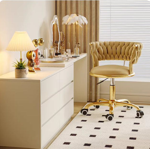 Home Office Desk Chair with Woven Backrest Cushion Armrest Golden Metal Frame Swivel Height Adjustable