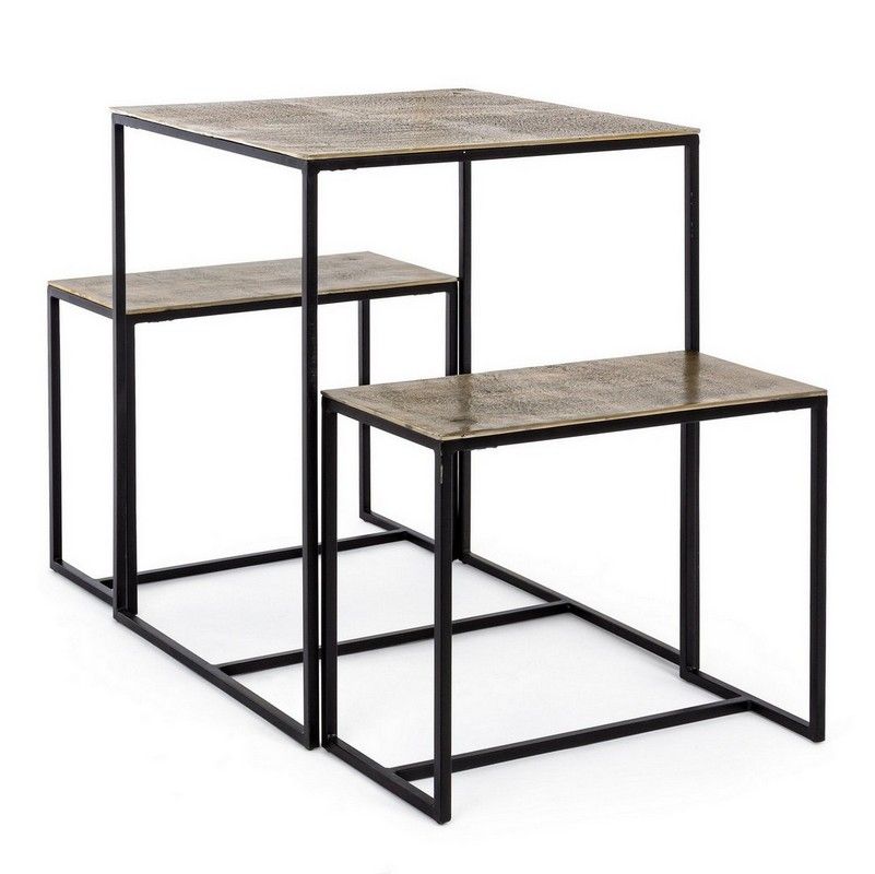 Home Office Living Room Luxury Modern Minimalist Golden Black Metal Coffee Side Table Set of 3 Nesting Table For Indoor Use