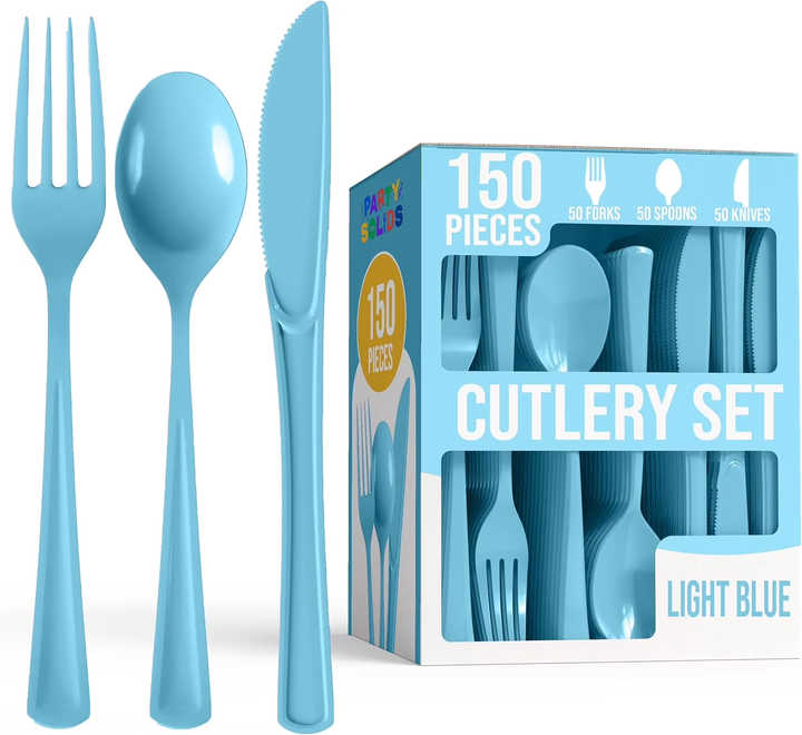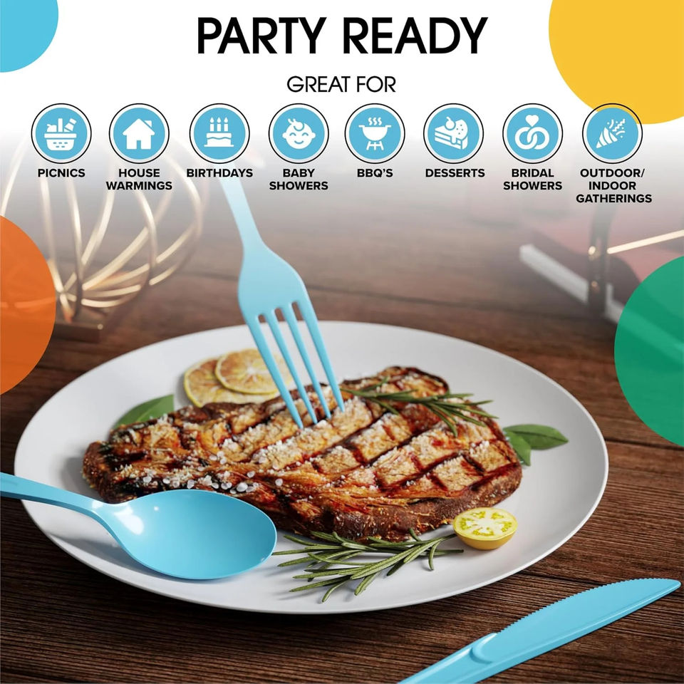 Home Richfull Light Blue Eco-Friendly Disposable Plastic Cutlery Combo Set-Biodegradable & Recyclable for Parties