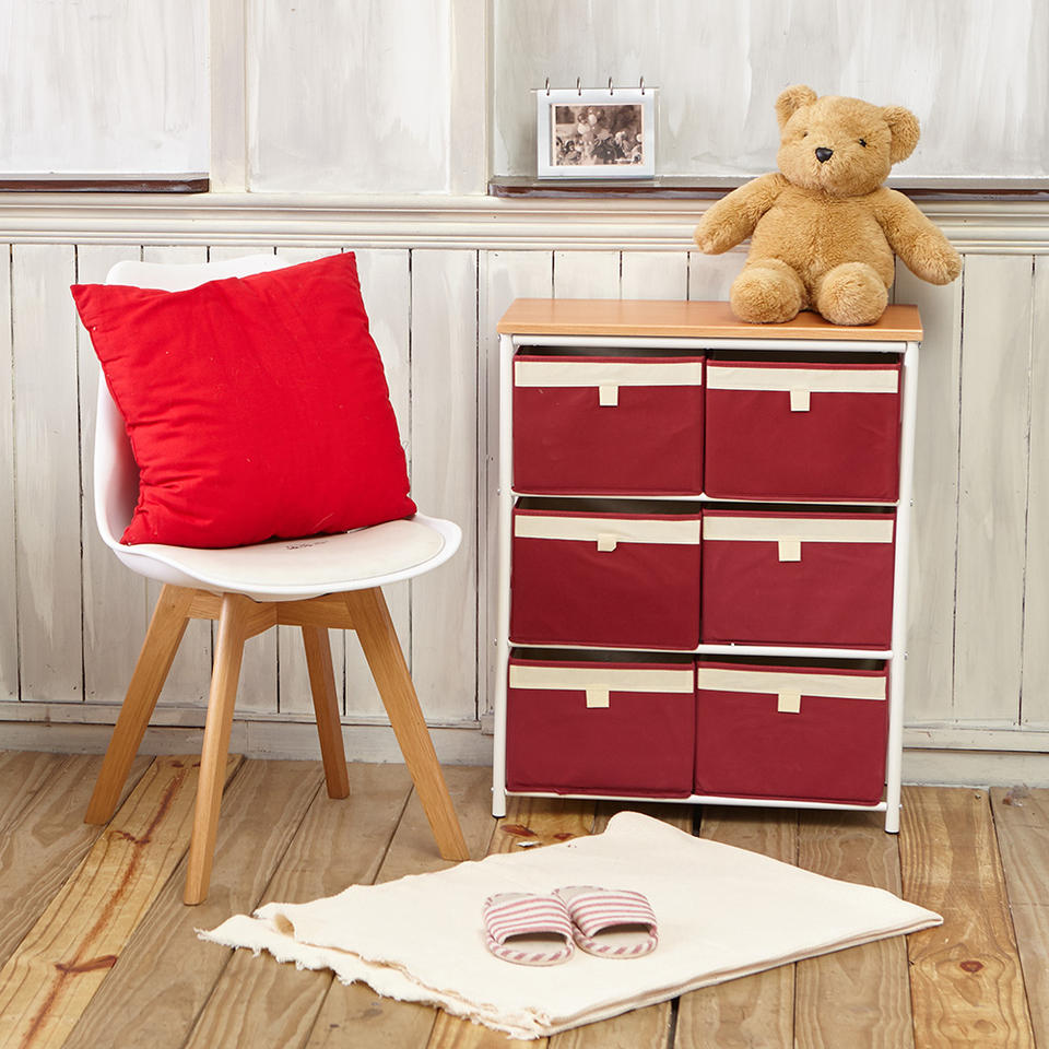 Home Storage 6-drawer DIY Fabric Storage Organizer Box with Wood Shelf