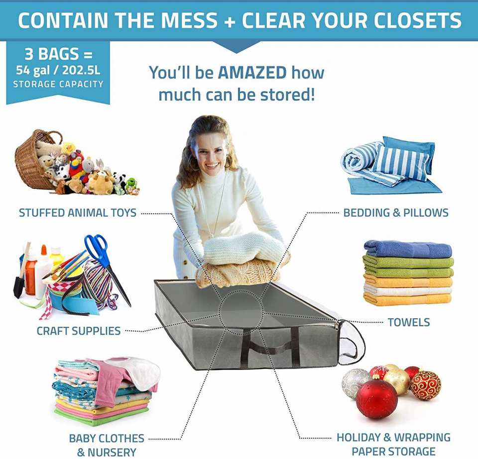 Home Storage Large Underbed Blanket Quilt Reusable Fabric Storage Organizer for Clothing Storage Bag