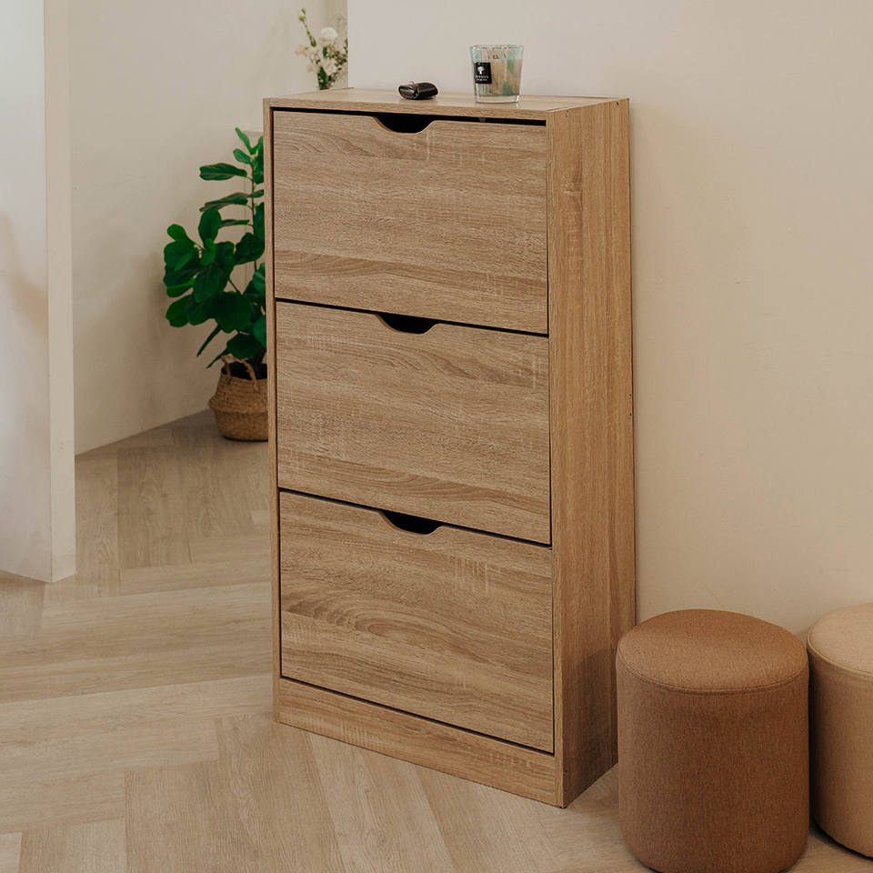 Home Storage Modern Three-Layer Shoe Cabinet with Wood Grain MDF Panel Design Easy Assembly for Entryway Living Room Furniture