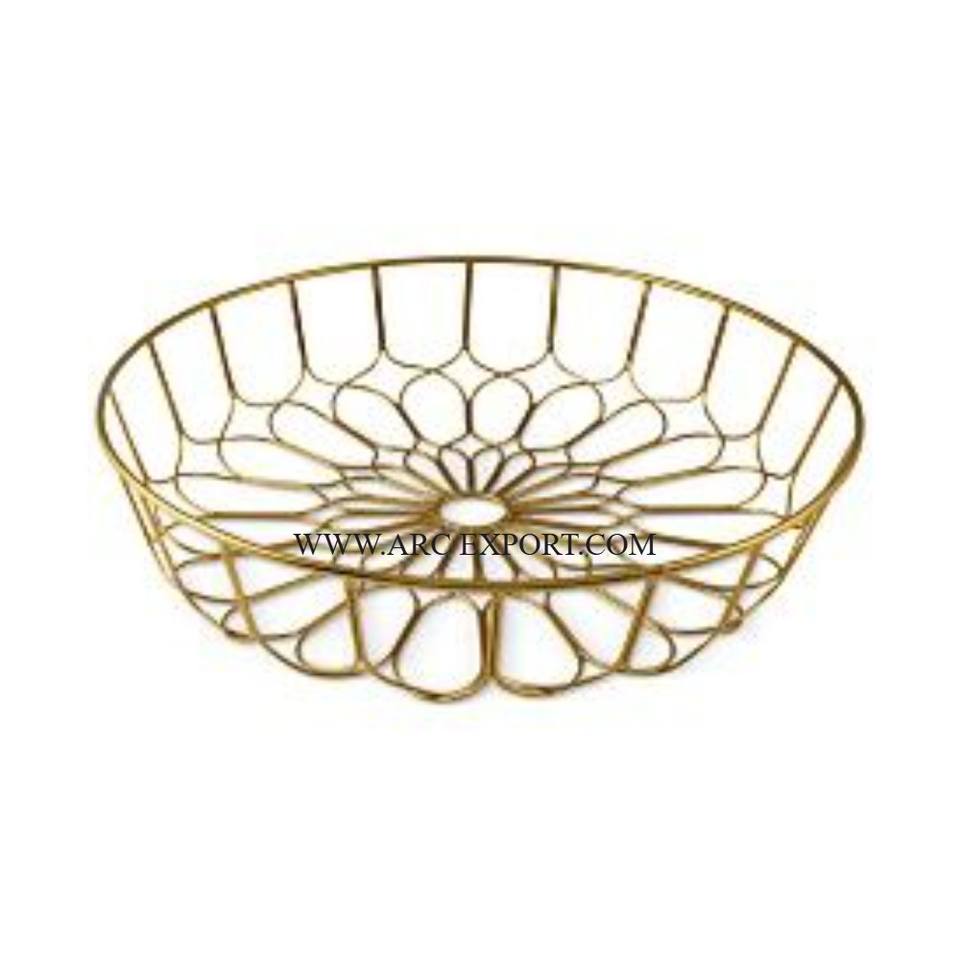 Home Table Ware Decorating Fruit and Vegetable Storage Basket Superior Quality Round Shape Large Size Metal Gold Storage Basket