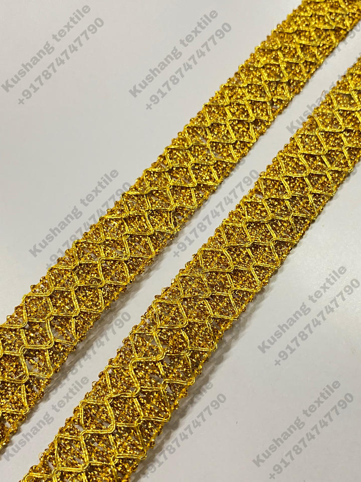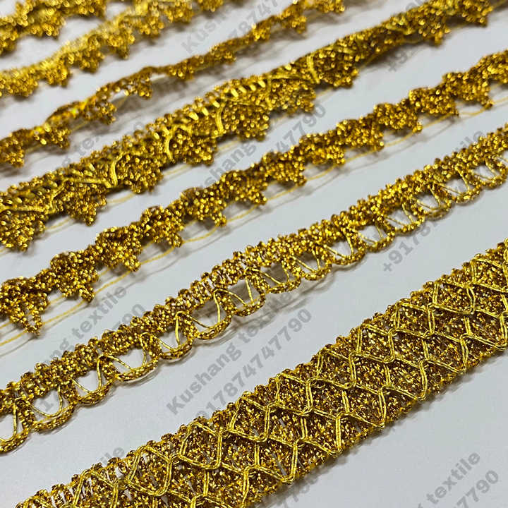 Home Textiles Gold Thread With Sequins Lace Piece Dance Dress Sewing Glitter Woven Lace Trim