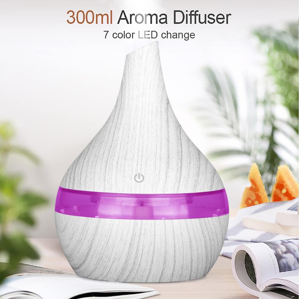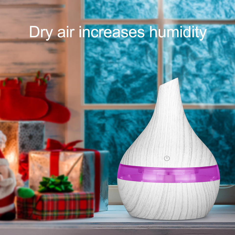 Home USB Wood Grain Humidifier 300ml Desk Air Purifier Diffuser With Led Light For Living Room