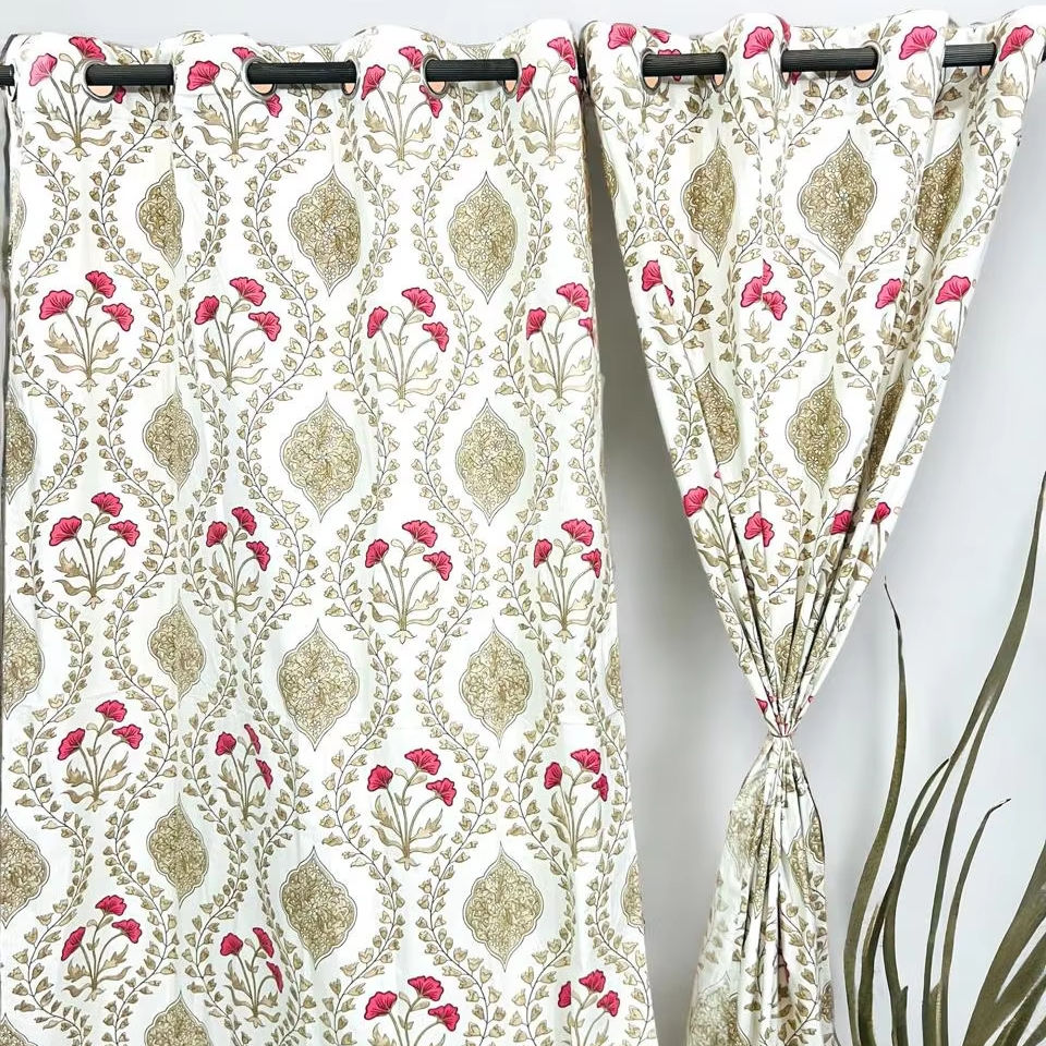 Home Use Printed Cheap Curtain Indian traditional Curtain Style for Dubai New Design hand block Printed Curtains for Living Room