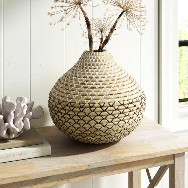 Home accessories raffia floral vases table top decoration customizable shape and size seagrass vase
