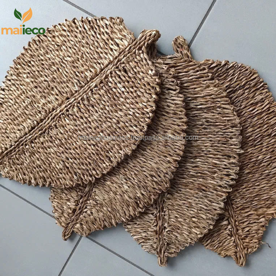 Home and Kitchen Top Picks Leaf Shaped Glass placemats Handicraft Desk Mat Seagrass Kitchen Supplies Packaged in Carton