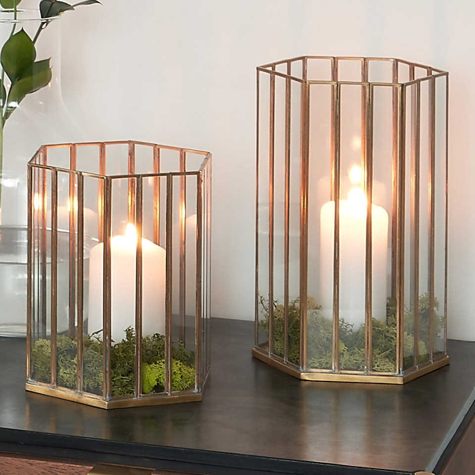 Latest Design Brass and Glass Hurricane Candle Holder with Thin Brass Rim Handmade Modern Christmas Decor for Events