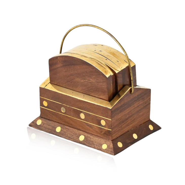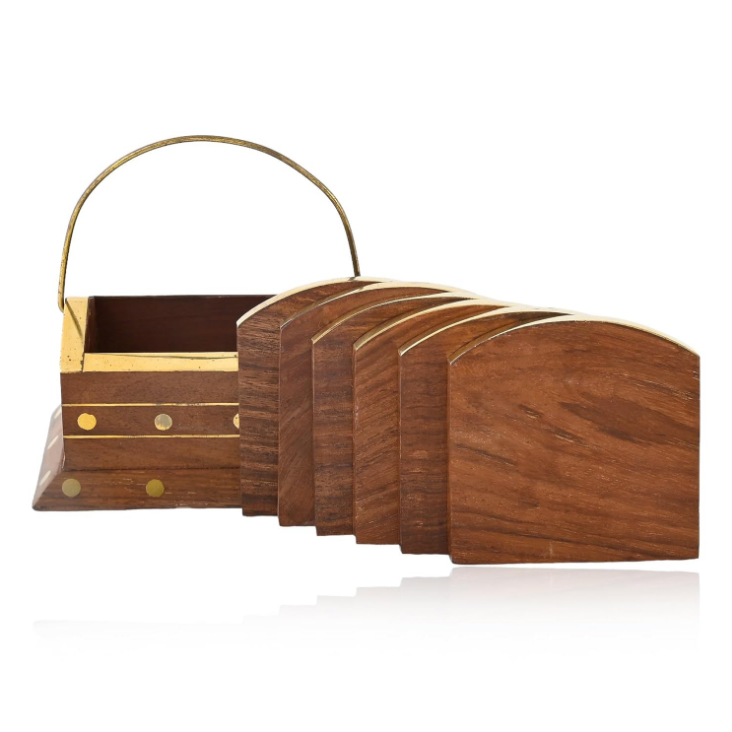 Home decor unique handmade coaster set wooden home kitchen office dining table tea cups coffee mugs beer cans bar water glasses