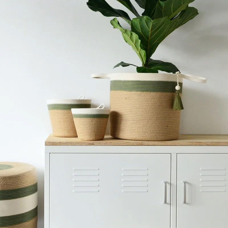 Home decoration hand-woven vegetable toys sundries laundry basket woven cotton rope basket