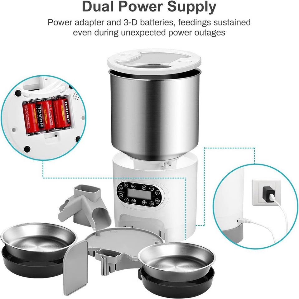 HomeMeet HM602A Automatic Pet Feeder Stainless Steel Dual Bowls LCD Display Mobile/Wi-Fi App Control Portion Control Large