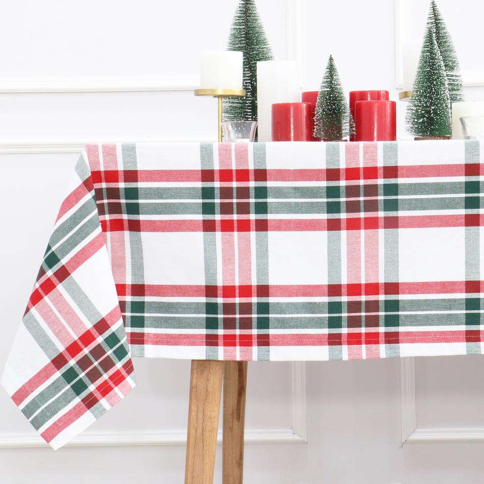 Homestead 60*120 Inch Modern Outdoor Picnic Dining Tablecloth 100% Cotton Customizable Red Green White Plaid Water Resistant