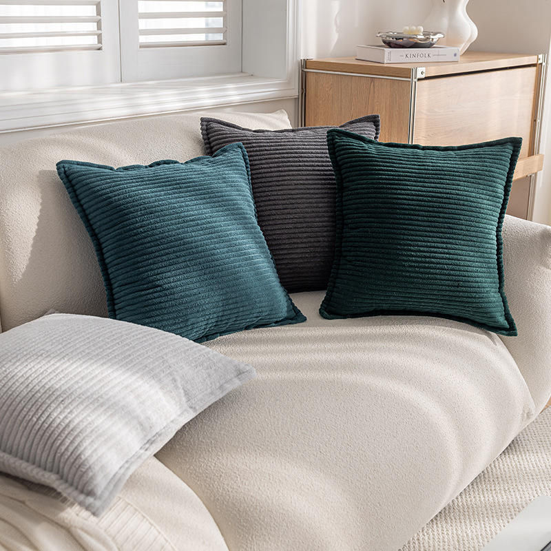 Homey Solid Color Corduroy Sofa Cushions Square Lumbar Pillow Covers Washable Polyester Cotton Pillowcase for Living Room Decor