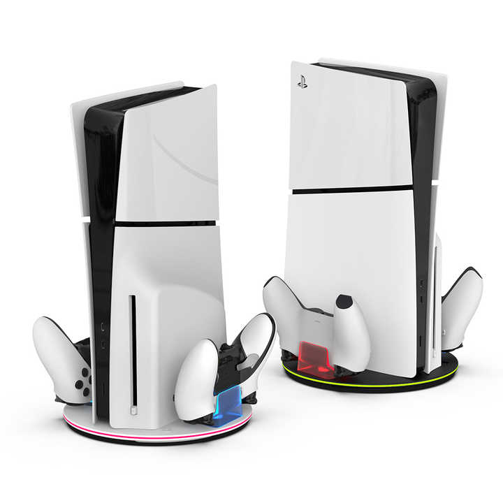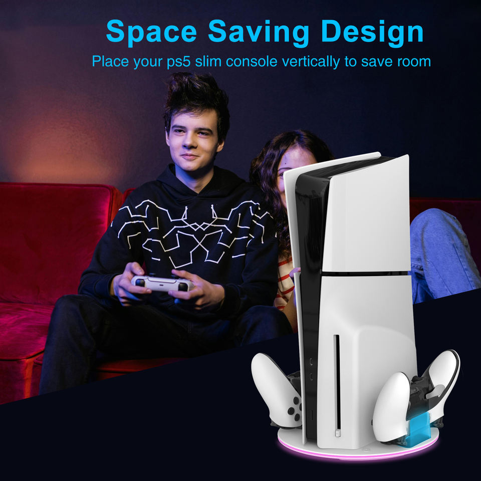 Honcam PS5 Accessories PS5 Slim Digital/Disc Console Stand for Playstation 5 Controller Charging Station With RGB