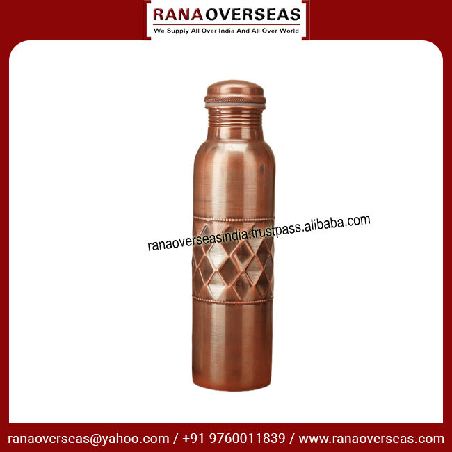 Honey Cube Pattern Pure Copper Water Bottle for Drinking 34 Oz Large Handcrafted Ayurvedic Copper Bottle at Wholesale Price