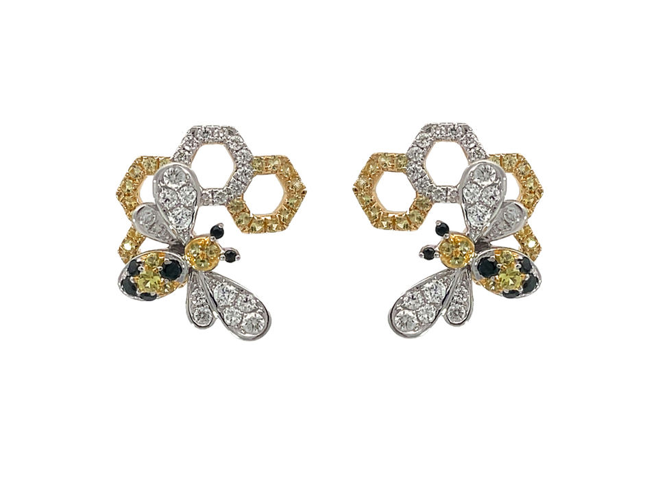 Honeycomb Design Stud Earrings 18K Gold White Yellow Black Diamonds Cute Animal Jewelry Hypoallergenic Women Accessory Gift