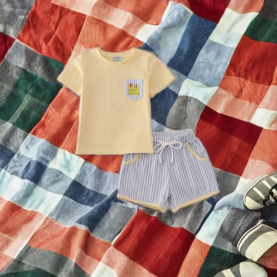 Honeydew Kids Clothing Adorable Boys Clothing Set Everyday Smart Casual Crayon Embroidery Shorts Cheerful Themed Design