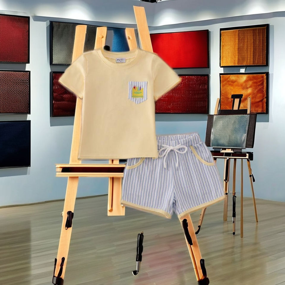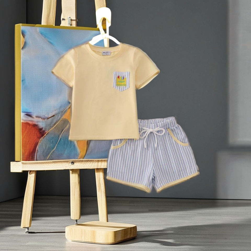 Honeydew Kids Clothing Fun Creative Boys Clothing Set Vibrant Apple Crayon Embroidery Shorts Smart Casual for School Playtime