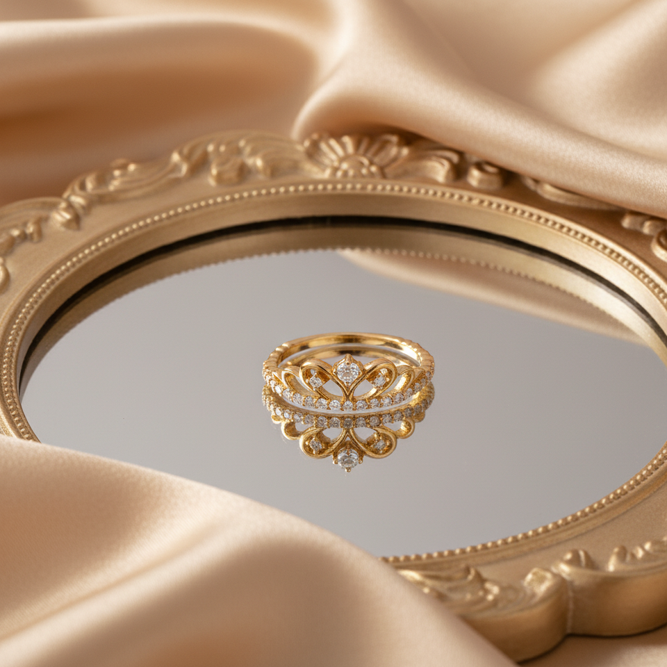 Hong Kong Supplier Jewelry Crown Rings Vintage Victorian Eternity Wedding Band Ring18K Solid Gold Natural Diamond Ring For Woman