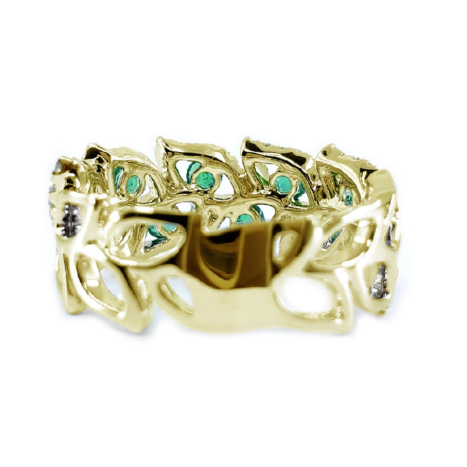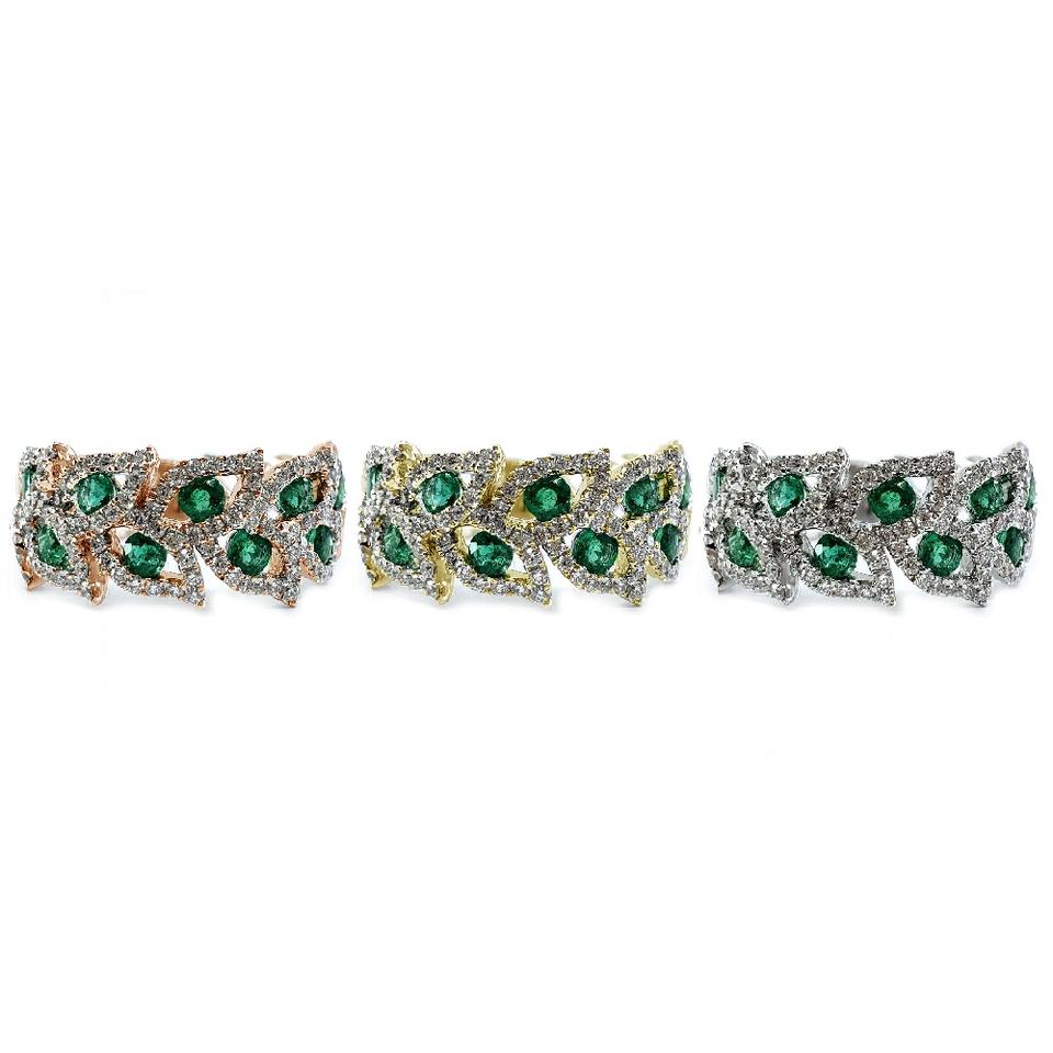 Hong Kong Supplier Jewelry Precious Best Quality Platinum Yellow Gold Natural Diamond & Emerald Band Ring For Woman