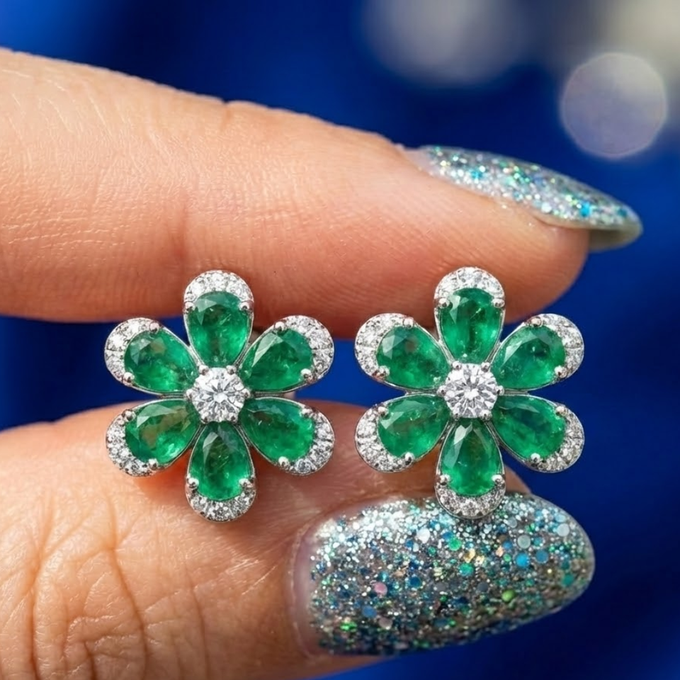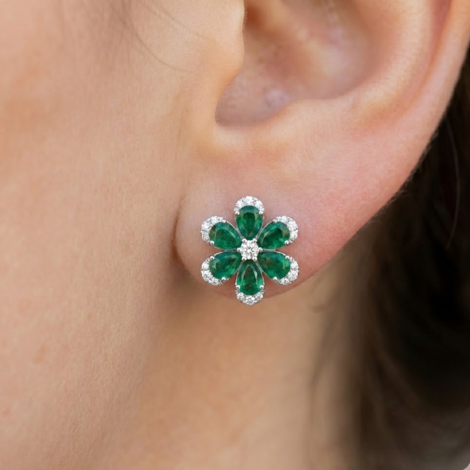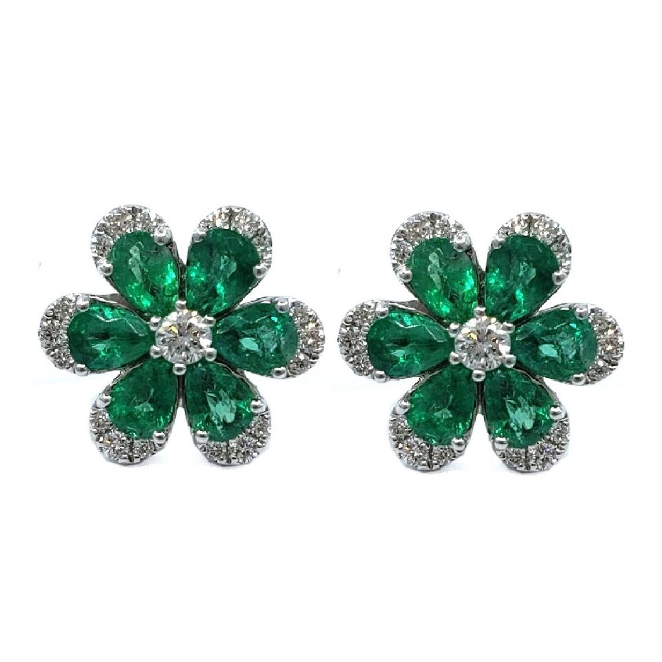 18k diamond Stud Emerald Earrings