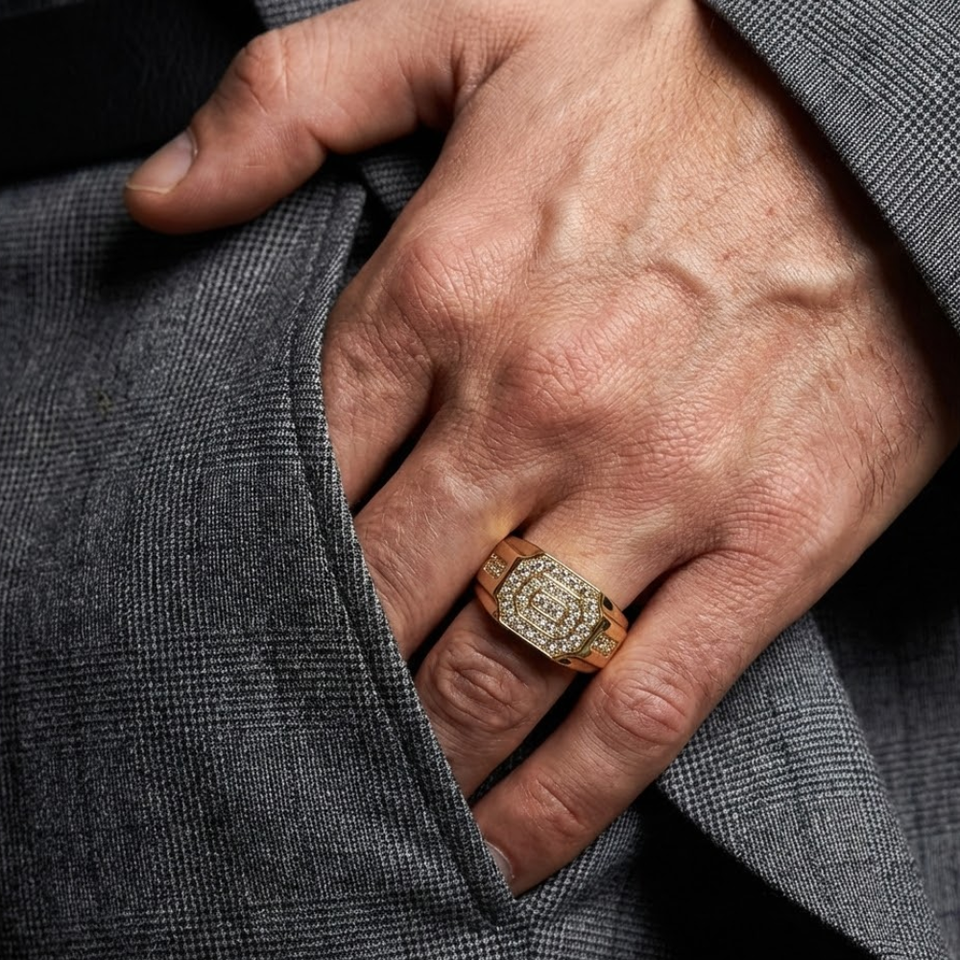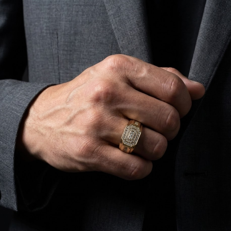 Hong Kong Top Sales Male Gift 18k Solid Yellow Gold 100% Natural Diamond Fine Jewelry Statement Broad Gold Band Ring for Men