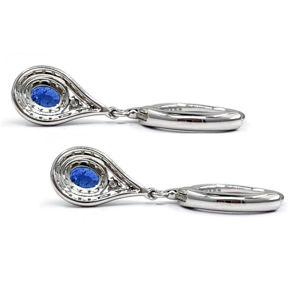HongKong Good Quality Long Earrings Love Series 18k White Gold Real Diamond Color Stone Blue Sapphire Drop Earrings for Women