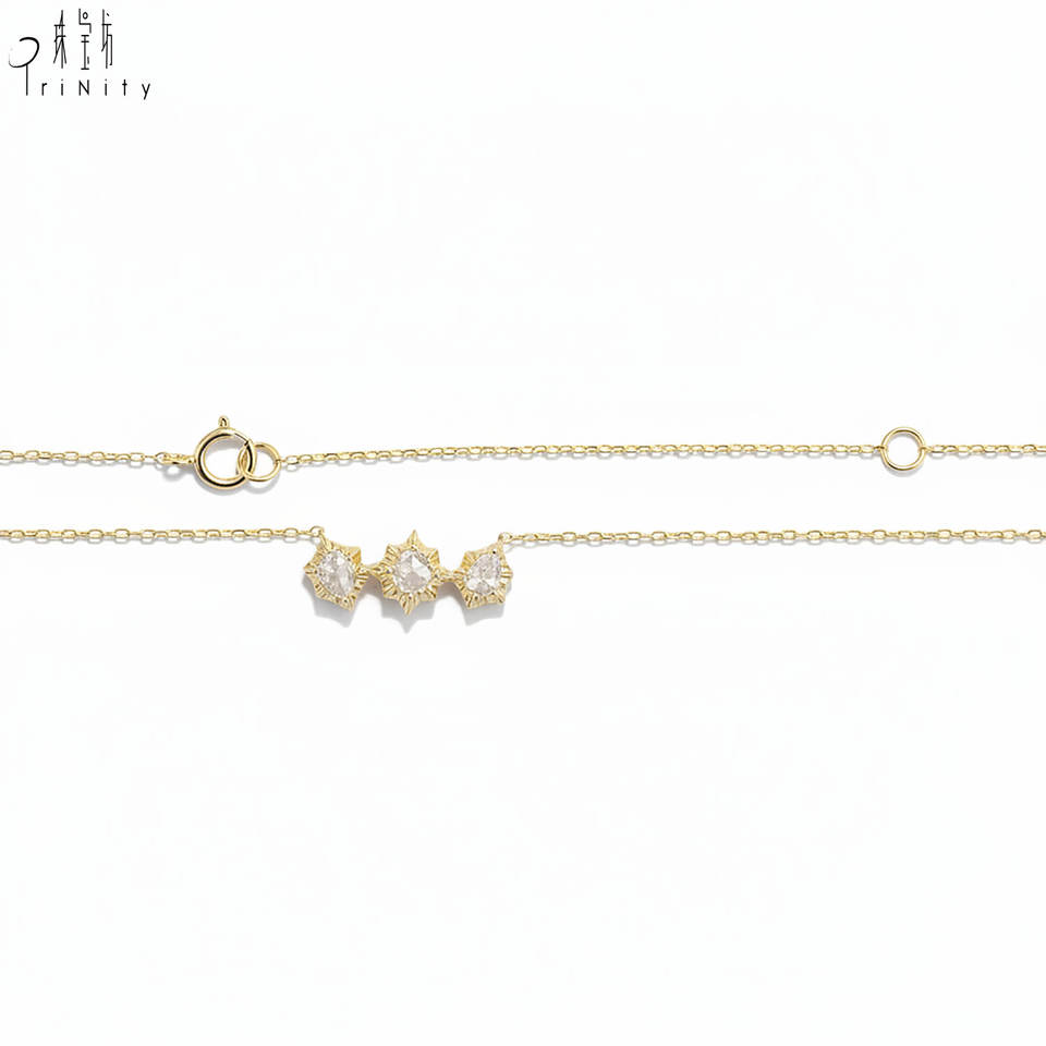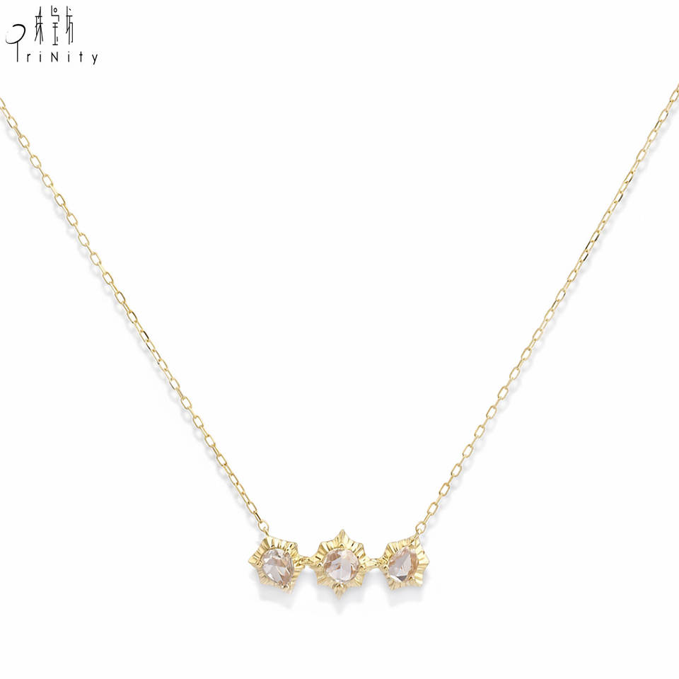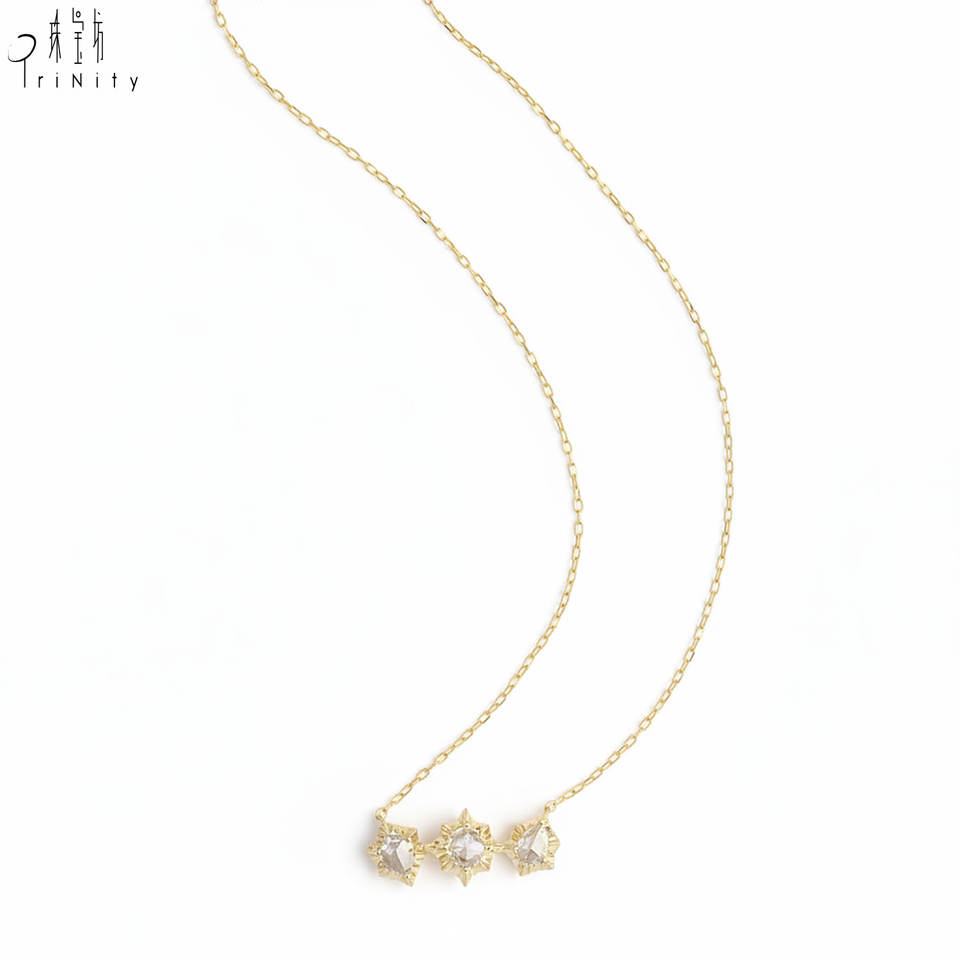 Hongkong Supplier Wholesale Fine Jewelry 18K Solid Yellow Gold Natural Diamond Rose Cut Diamond Pendant Necklace For Women Gift