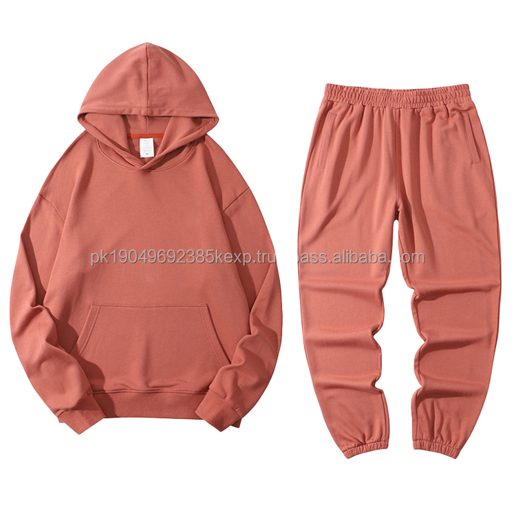 Hooded Acid Wash Solid Baggy Pants 2 Piece Jogger Set Sweatsuit Outdoor Sportswear Gym Men