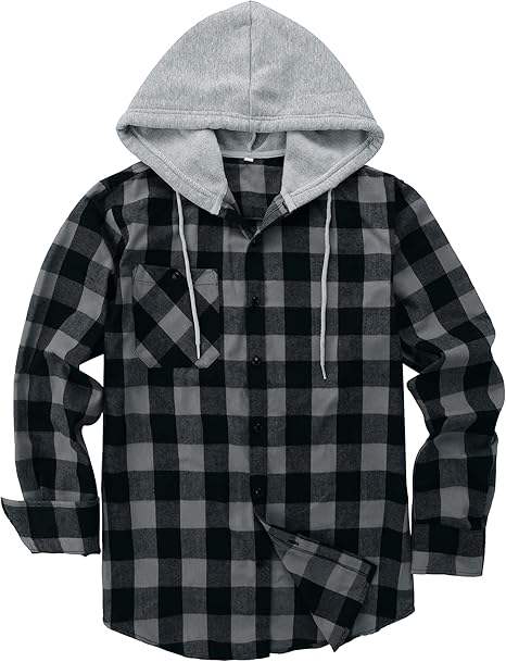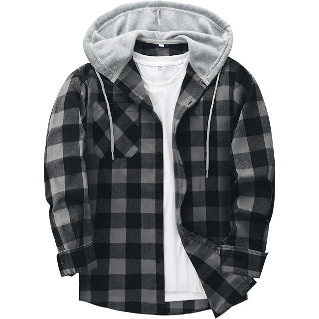 Hooded Flannel Shirt for Men Plaid Shirts Long Sleeve Pullover Hoodie Jacket Button-Down With Custom Logo Direct from Factory