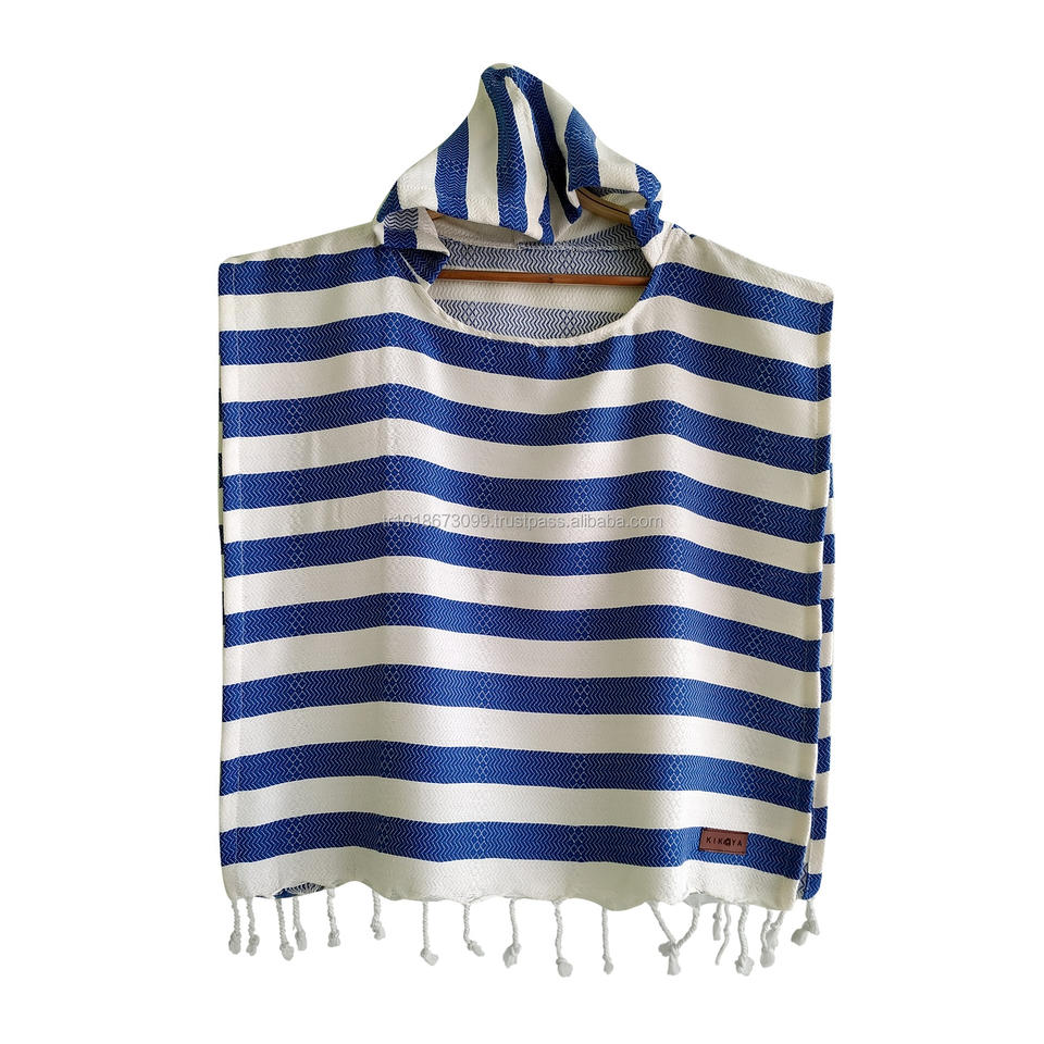Hooded Pestemal Turkish Towel Beach Pool Poncho for All Sizes Pasha Safran Hooded Kids Poncho Collection Made in Turkey