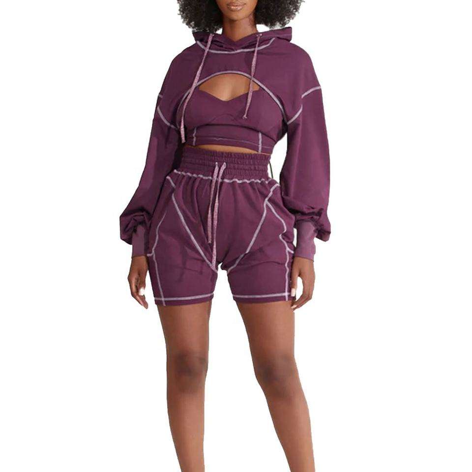 Hoodie Crop Joggers Pants Winter Fleece Casual Washed Active Tracksuit Set Womens 2 Piece Solid Customized Logo Yellow Wholesale