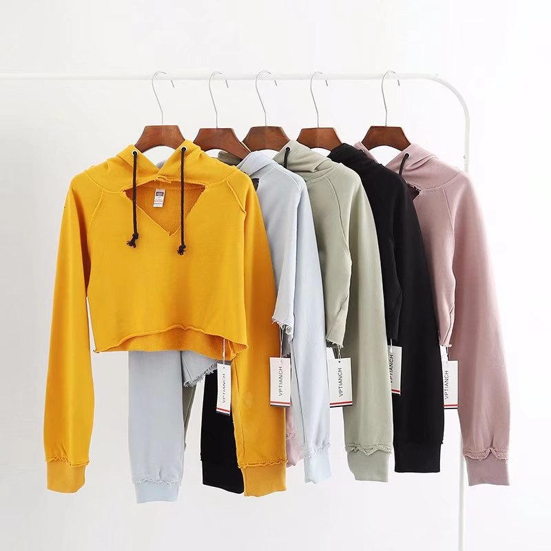 Hoodies Crop Top Pink Hoodies Stylish Happy Young Woman Clothes Crop Runners Sweatshirt Jacket Pullover Autumn Winter Sport Top