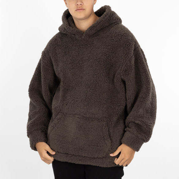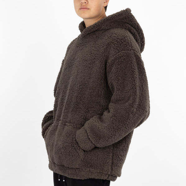 Hoodies Custom Logo Winter Blank Heavyweight Polar Polyester Faux Fur Shearling Fleece Sherpa Hoodie for Men OEM Service