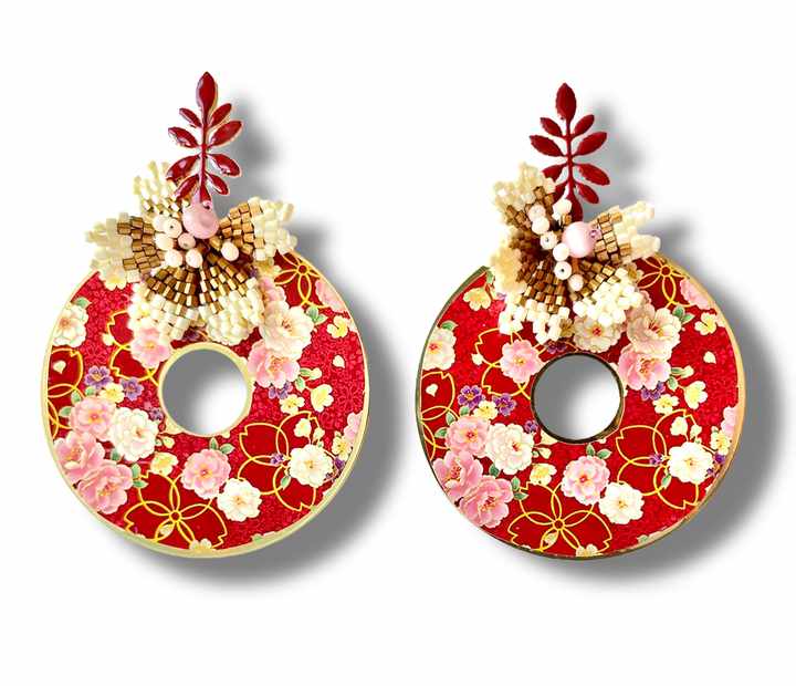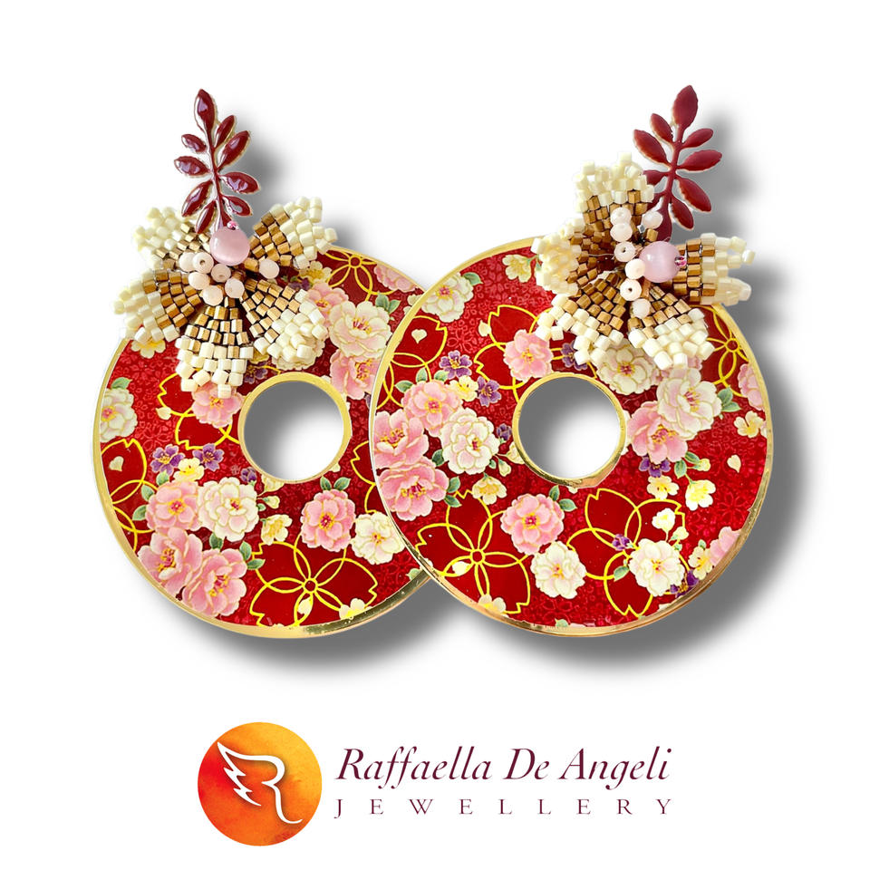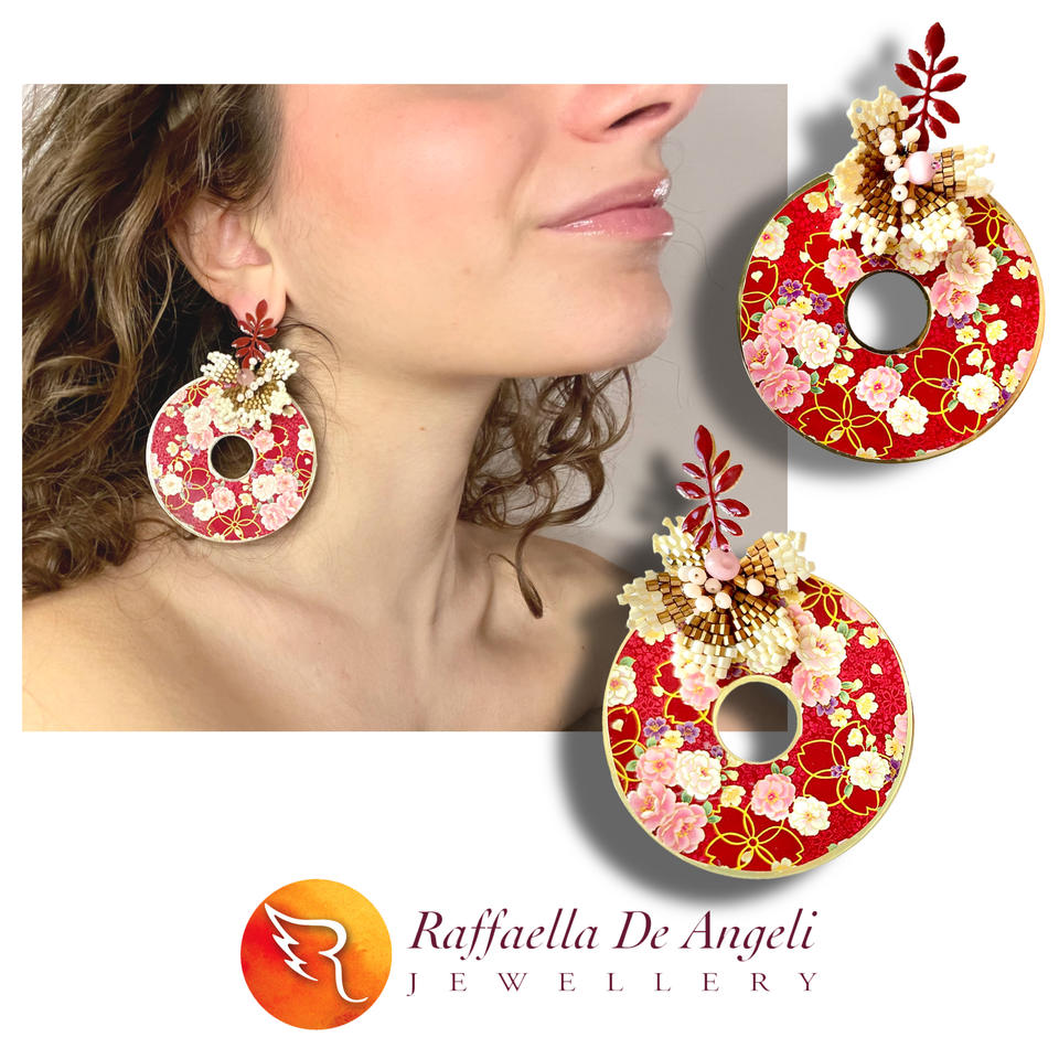 Hoop Earrings Summer 01 ItalianCraftmen UniqueProduct Oneoff MadeInITALY Brass Moon Shape Romantic Handmade Beadwork Jewellery