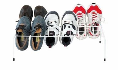 Horizontal Shoe Rack Metal Single Tier Space Saving Entryway Storage White 6-10 Pairs Capacity Minimalist Design