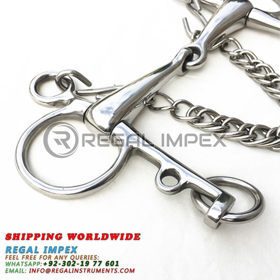 Horse Bit Stainless Steel Pelham Drill Hinged Mouth With Hooks and Curb Chain Wholesale Equestrians and Farrier Supplier