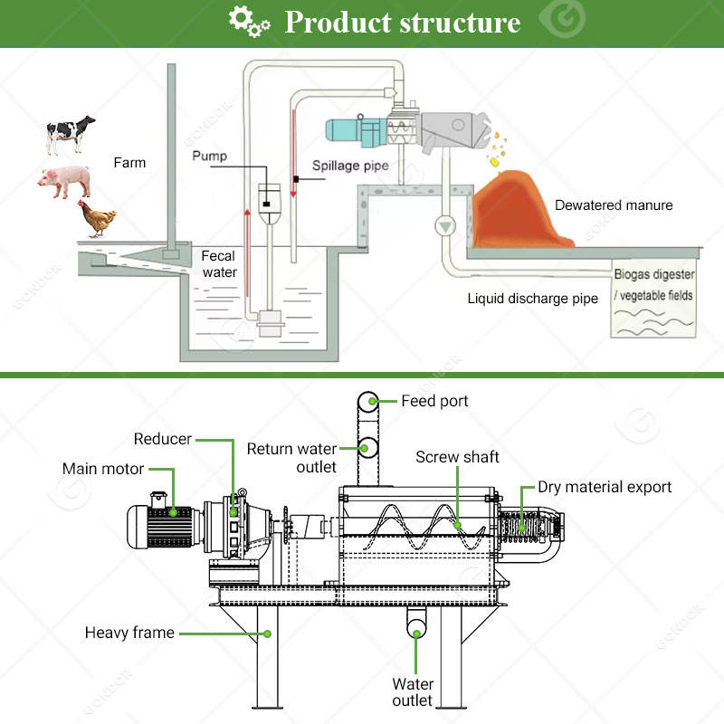 Horse Manure Dehydrator Dewater Rotary Screw Press Pig Chicken Electroplating Sludge Machine Equipment