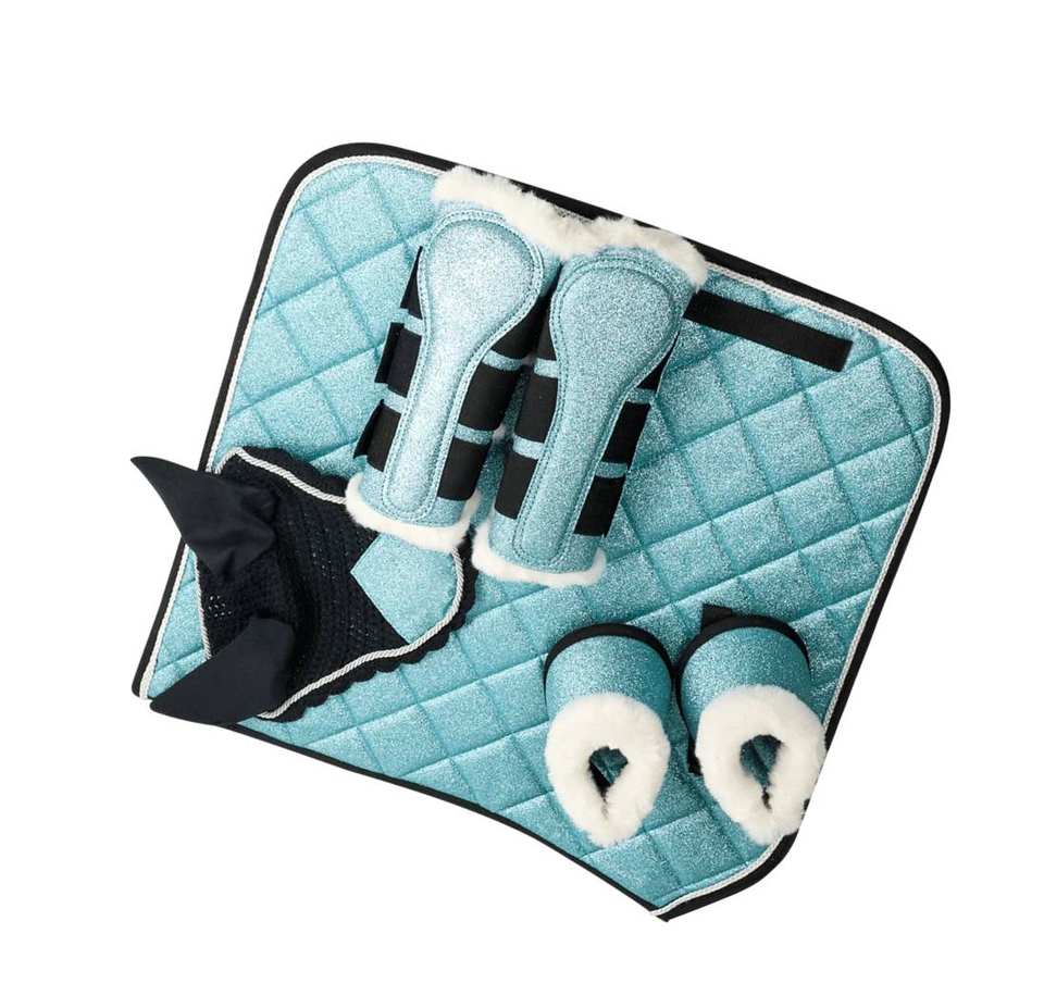 Horse Saddle Pad Set with Sparkly Quilted Pad Matching Leg Boots and Ear Bonnet by TARIQ MFG CO