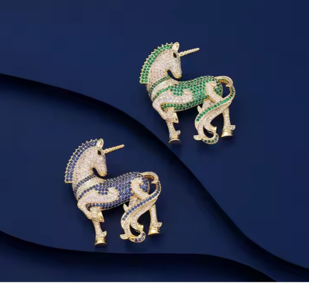 Horse Stainless Steel Brooch Luxury Brooch Horse Colorful Elegant Copper Inlaid Zircon Plated Unicorn Brooch Gift