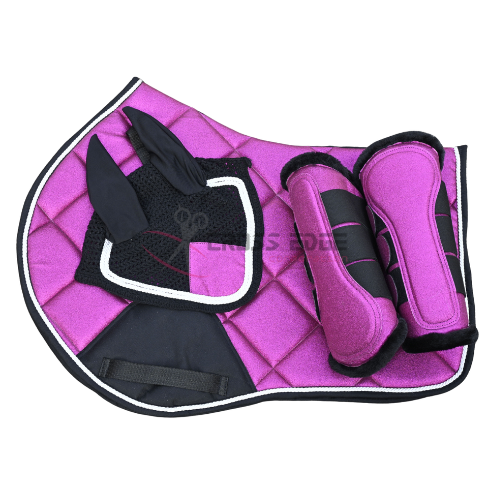 Packing:Customized Packing anti-fly bonnet stylish glitter Saddle Pads Set