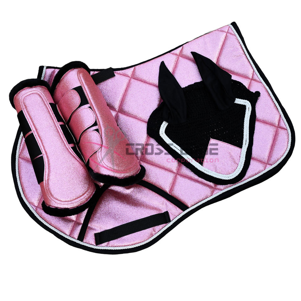 Customized jumping Horse Saddle Pad set with Fly Veil & Fleece Boots