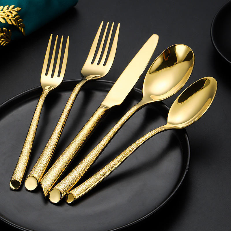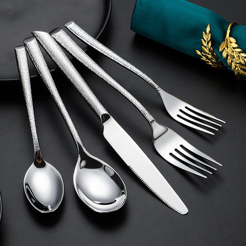 Horseshoe Cutlery Set 5 Pieces 316 Stainless Steel Knife Fork Spoon Serrated Edge Polished Finish Solid Color Adult Use