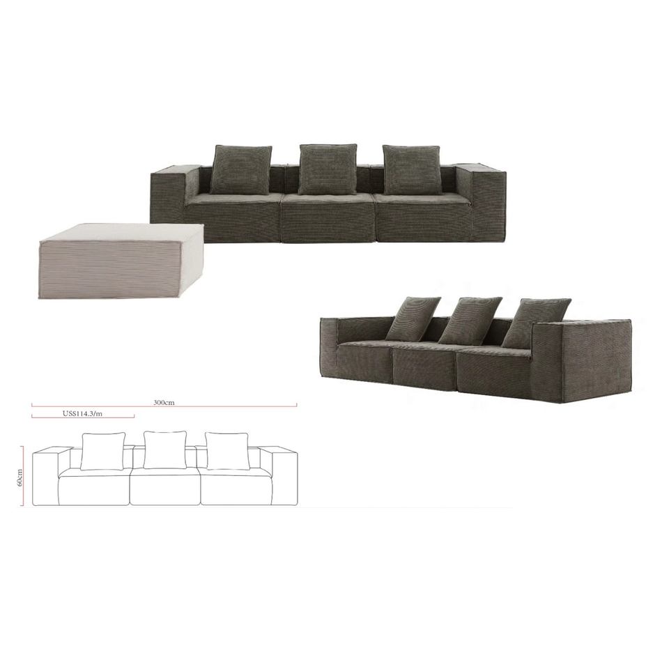 Horticlub Compact Modern Tufted Fabric Sofa with Adjustable Backrest for Tiny Apartments