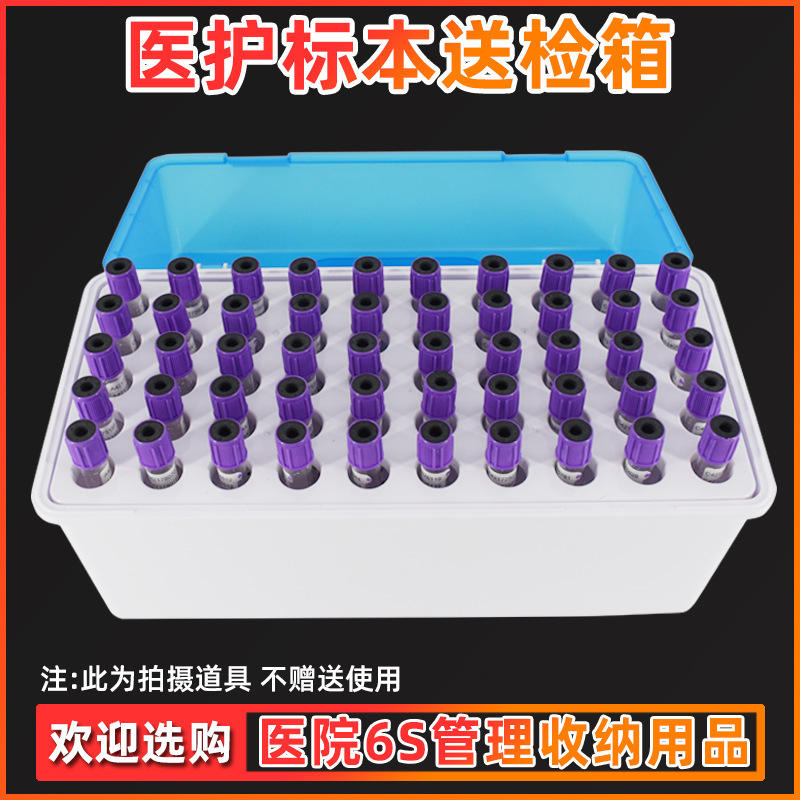 50-well specimen delivery box (blue), 50-well test tube rack (white)color